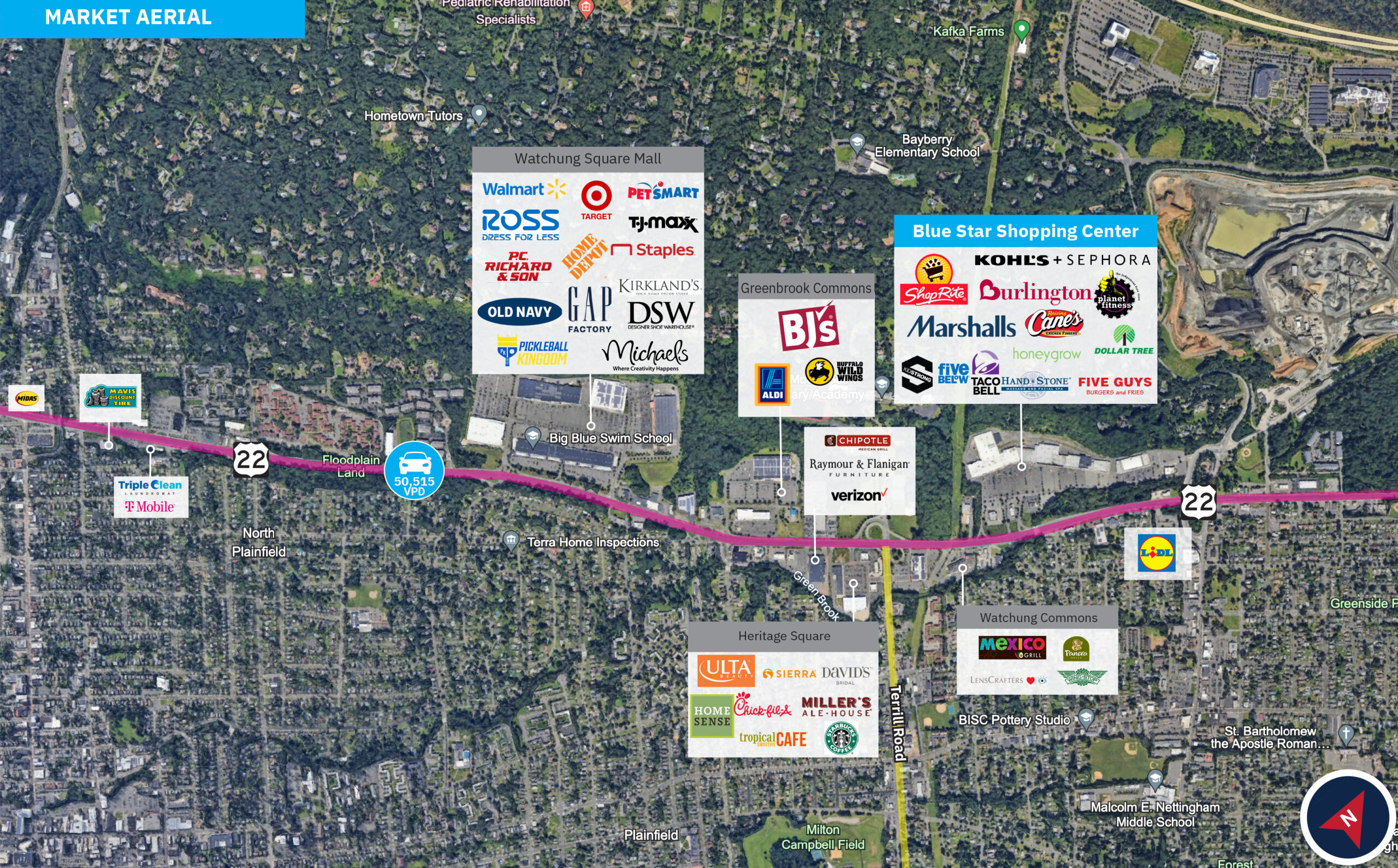 • Positioned along US Route 22 in Somerset County—one of New Jersey’s most active retail corridors with strong daily traffic and regional draw.